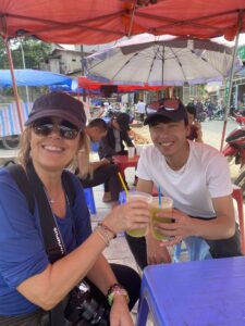 - 8h30 am we enjoying the beautiful mountains and some local people on the way before we stop at old builder about 200 years ago it’s call King Mong house.